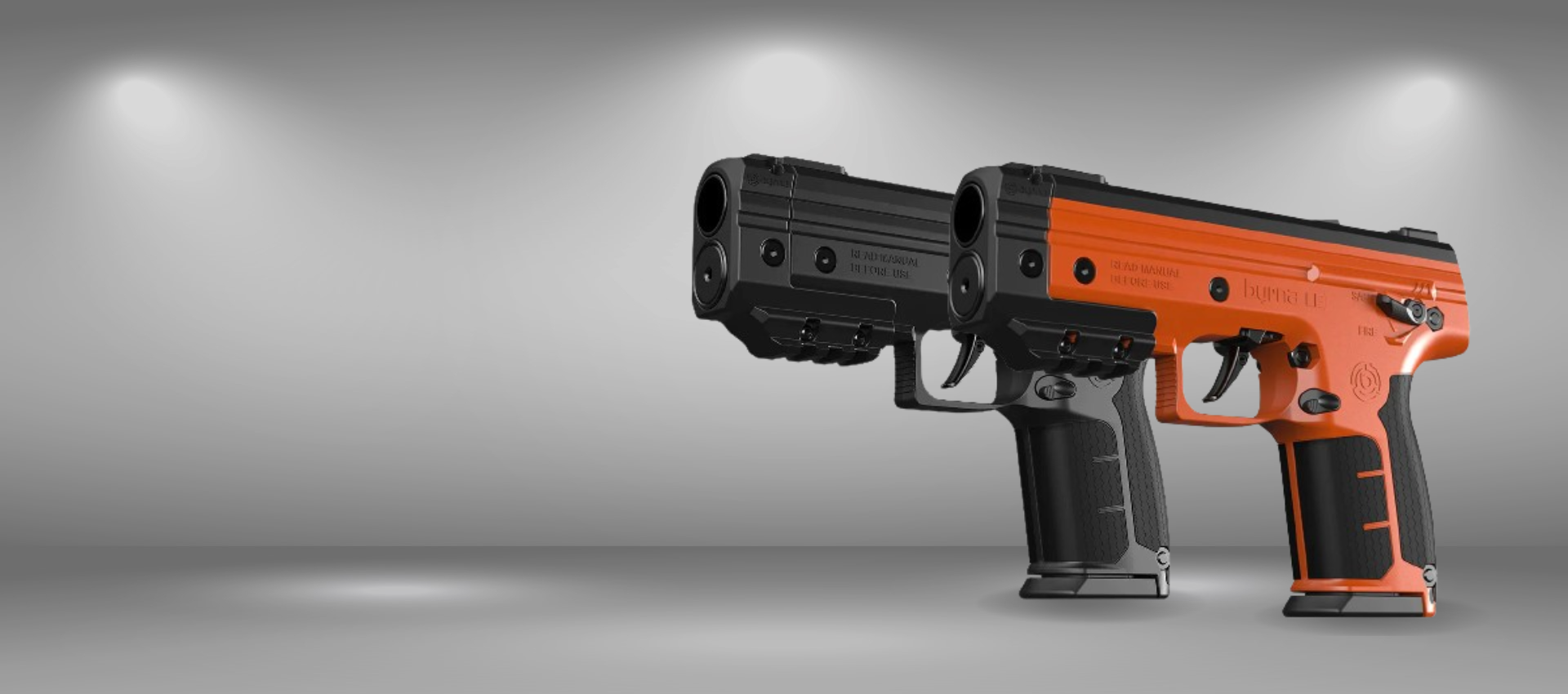 No Our Less-Lethal line of self-defense pistols and rifles are powered by compressed CO2 cartridges and fall under the same classification as a paintball or airsoft gun.